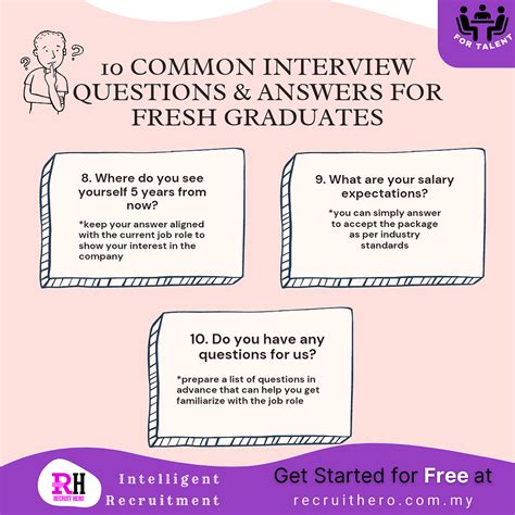 Example Interview Questions And Answers For Fresh Graduates - Questions & Answers. Before your interview, take a look at the job listing again. Provide an answer that the interviewer won’t see.