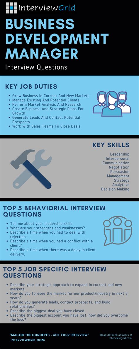This question assesses integrity and commitment to quality. If you have a business development manager or officer interview coming up, it is very important that you demonstrate the key qualities and attribuets that are contained within the job description. Tell the interviewer who you are, including your education qualifications and years of experience, and then state why you are interested in business development management. Which is the most common mistake made by salespeople when speaking to prospects? Business managers are responsible for directing projects and the meetings that go along with them. Ad we rank your applicants according to test scores certified by our experts. I begin every meeting by reading out loud the items on my agenda. I learned a lot about myself and how to work with people from different. If you’re looking to ace your business development manager job interview, you’ll need to get familiar with the most common interview questions and prepare your answers. Also, highlight your experience and qualifications.