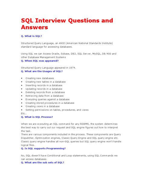 Sql Interview Questions And Answers For 10 Years Experience - Questions & Answers. With that sub query result, main query will be executed. I.e., the results will contain.